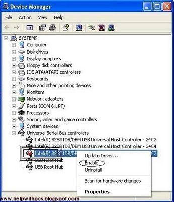 2. Go to Universal Serial Bus Controller. See if there are any red colored cross? If yes, right click and enable those USB Ports.
